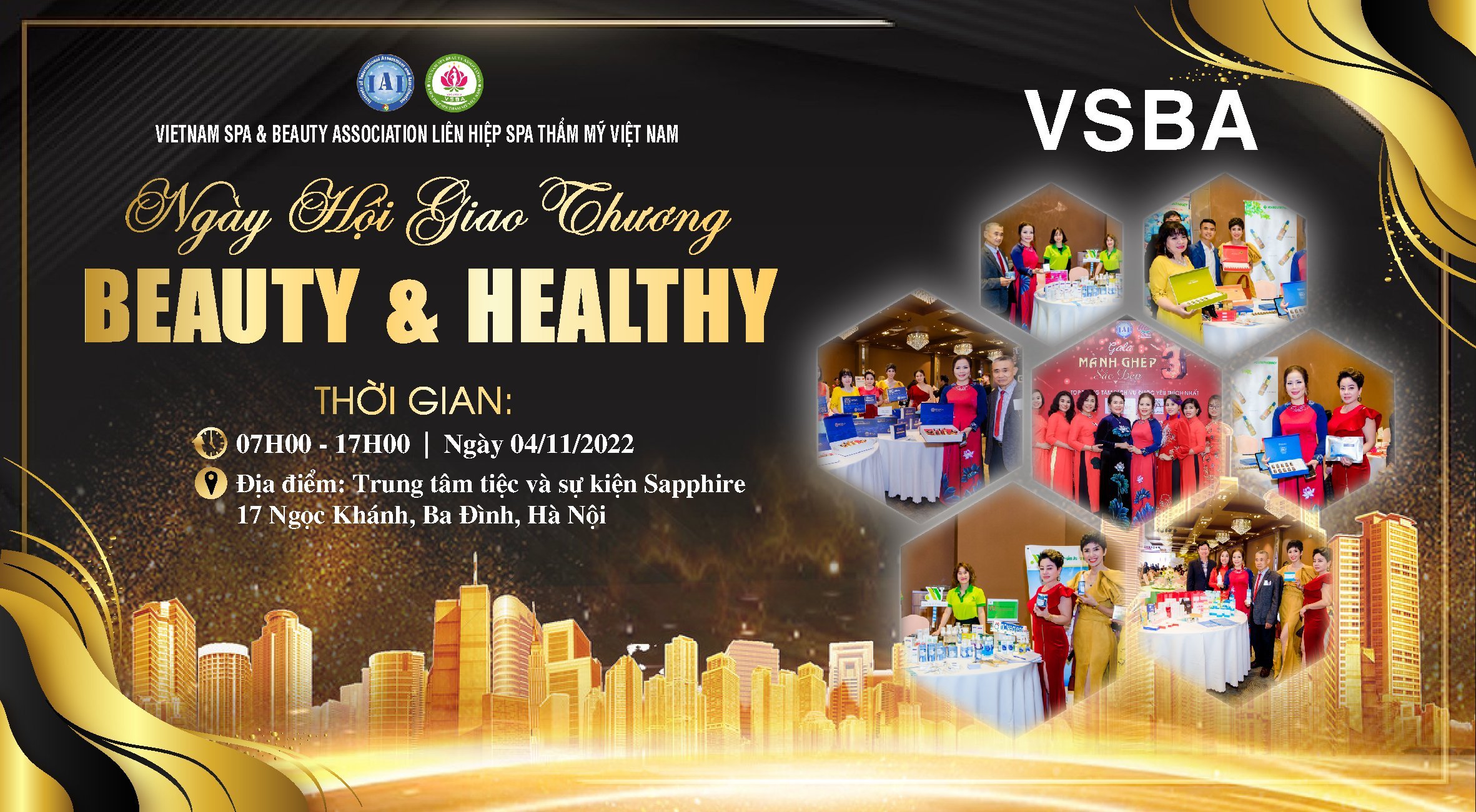 Ngày hội giao thương Beauty & Healthy chính thức diễn ra vào hồi 07h00-17h00 ngày 4/11/2022 tại Trung tâm tiệc và sự kiện Sapphire 17 Ngọc Khánh, Ba Đình, Hà Nội. Với sự tham gia của hơn 20 các chi hội, 500 hội viên doanh nghiệp và hơn 50 gian hàng thuộc hội viên Liên hiệp spa thẩm mỹ Việt Nam hứa hẹn sẽ để lại nhiều trải nghiệm mới mẻ thú vị cho các khách mời khi tham gia sự kiện.