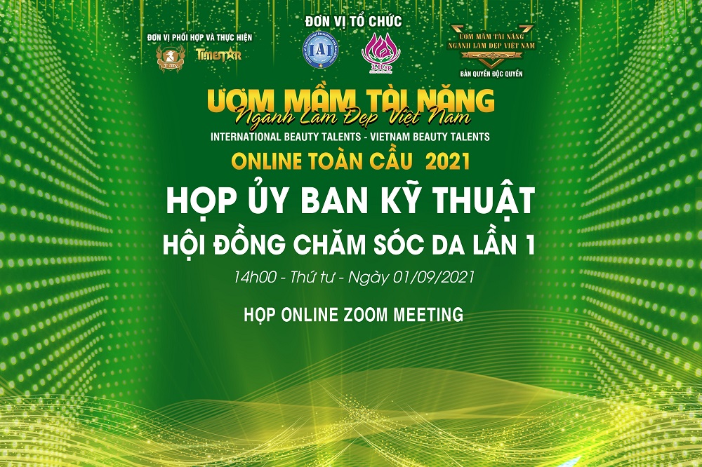 Cụ thể trong chương trình Ươm mầm tài năng ngành làm đẹp Việt Nam 2021 sẽ có 4 buổi họp zoom. Buổi họp zoom thứ nhất diễn ra vào 14h, thứ 4, ngày 01/09/2021 với chủ đề “HỌP UỶ BAN KỸ THUẬT HỘI ĐỒNG CHĂM SÓC DA LÀN 1”. Nội dung sẽ bàn bạc về các chuyên đề của từng module, hướng dẫn các ban giám khảo, giám thị thực hiện và phối hợp quy chế cuộc thi minh bạch và hiệu quả.