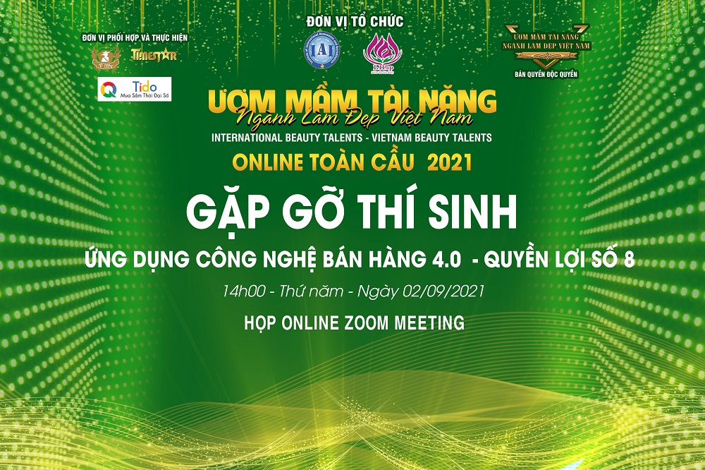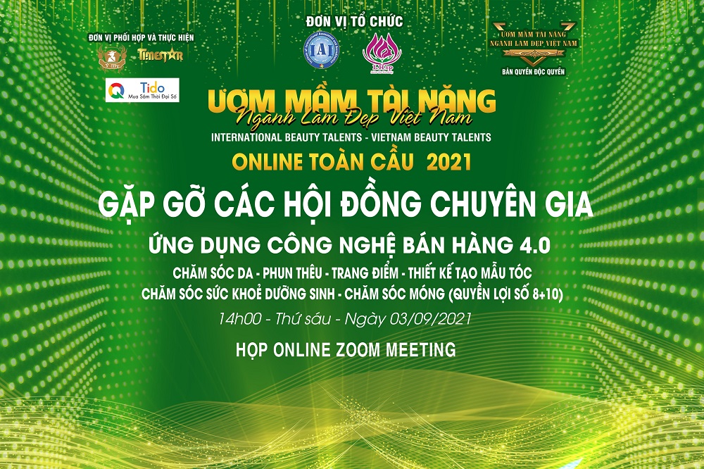 Ngày 03/09/2021 sẽ diễn ra buổi Zoom thứ 3 với chủ đề “GẶP GỠ CÁC HỘI ĐỒNG CHUYÊN GIA”, nội dung sẽ là ứng dụng công nghệ bán hàng 4.0 cho lĩnh vực chăm sóc da, phun thêu, trang điểm, thiết kế, tạo mẫu tóc, chăm sóc sức khỏe dưỡng sinh, chăm sóc móng.