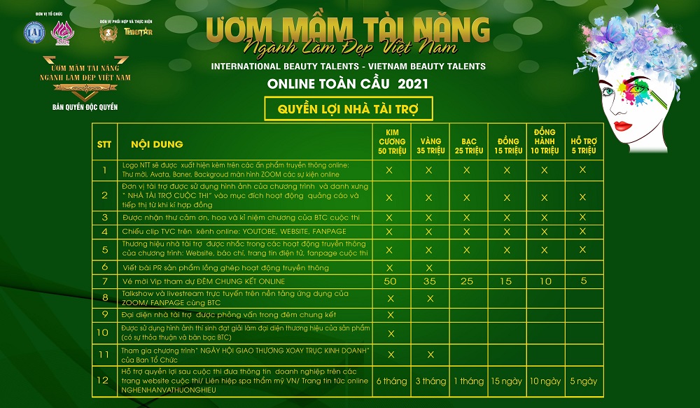 10. Hỗ trợ quyền lợi sau cuộc thi đưa thông tin doanh nghiệp trên các trang website cuộc thi/ Liên hiệp spa thẩm mỹ VN/ Trang tin tức online NGHENHANVATHUONGHIEU trong 3 tháng.