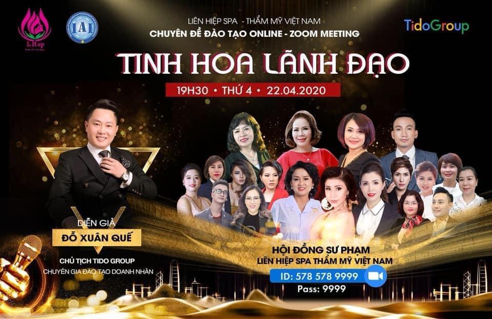 Liên hiệp Spa Thẩm mỹ Việt Nam – Chuyên đề đào tạo “Tinh hoa lãnh đạo 2020” Đầu tư vào tri thức luôn là đầu tư khôn ngoan và sinh lời. Nắm được tâm lý, mong muốn của hội viên, BCH Liên hiệp Spa Thẩm mỹ Việt Nam tổ chức chuyên đề đào tạo “Tinh hoa lãnh đạo 2020” do diễn giả Đỗ Xuân Quế - Chủ tịch TIDO Group, Chuyên gia đào tạo doanh nhân đứng lớp. Tham gia chuyên đề không chỉ giúp bạn nâng cao kỹ năng quản lý, tìm ra hướng đi cho doanh nghiệp của mình mà còn hiểu hơn về xu thế kinh doanh trong thời đại ngày nay.