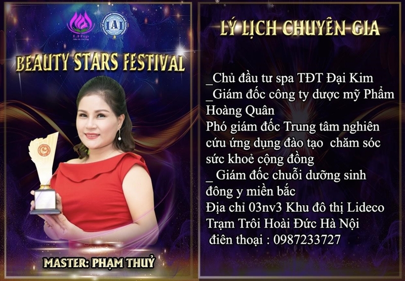 Tới đây, chuyên gia Phạm Thuỷ sẽ góp mặt ở Beauty Stars Festival - Lễ hội trình diễn kỹ năng chuyên môn các nghề trong lĩnh vực ngành làm đẹp hàng đầu tại Việt Nam 2020.