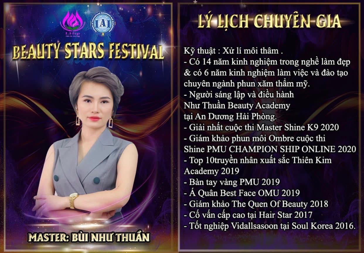 Tới đây chuyên gia phun xăm thẩm mỹ Bùi Như Thuần sẽ góp mặt trọng Lễ hội trình diễn kỹ năng chuyên môn các nghề trong lĩnh vực ngành làm đẹp hàng đầu tại Việt Nam 2020 - Beauty Stars Festival.