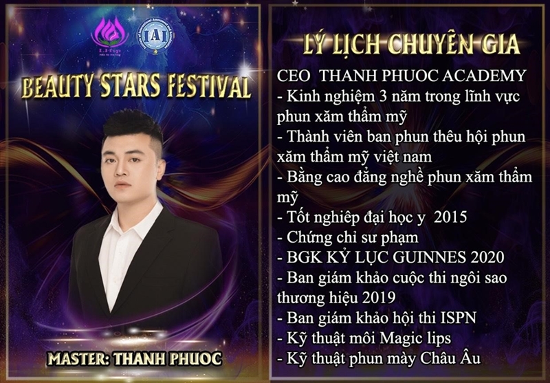 Trên vai trò là chuyên gia đào tạo, anh cũng đã giúp cho nhiều học viên trở thành những người thợ lành nghề, những chủ cơ sở thẩm mỹ uy tín trên khắp cả nước. Tới đây, chuyên gia Thanh Phước sẽ góp mặt ở Beauty Stars Festival - Lễ hội trình diễn kỹ năng chuyên môn các nghề trong lĩnh vực ngành làm đẹp hàng đầu tại Việt Nam 2020.