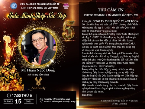 Công ty TNHH Quốc tế Ant Body của CEO & Founder Phạm Ngọc Đông trở thành Nhà tài trợ đồng hành tại Gala Mảnh ghép sắc đẹp 5