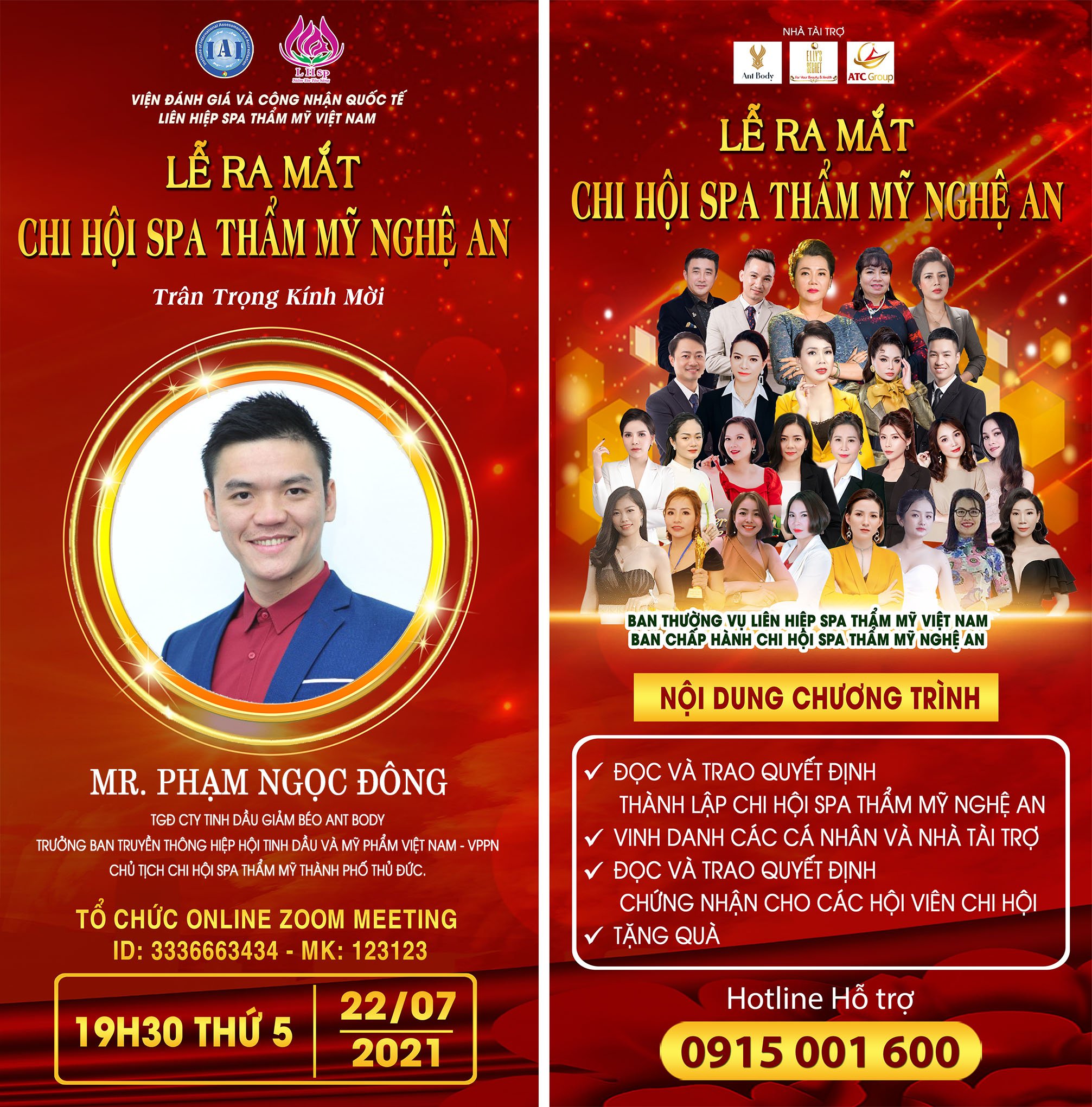 Không chỉ tạo ra những giá trị tuyệt vời dành cho người Việt, định hướng và giáo dục việc chăm sóc sức khoẻ, thẩm mỹ bền vững bằng phương pháp dưỡng sinh an toàn, Công ty tinh dầu giảm béo Ant Body của Ông Phạm Ngọc Đông còn dành nhiều sự quan tâm cho các sự kiện của ngành làm đẹp Việt. Cụ thể trong sự kiện ra mắt Chi hội spa Thẩm mỹ Nghệ An ngày 22/07/2021, Ông sẽ đại diện cho Ant Body tham dự trong vai trò Nhà tài trợ Đồng.
