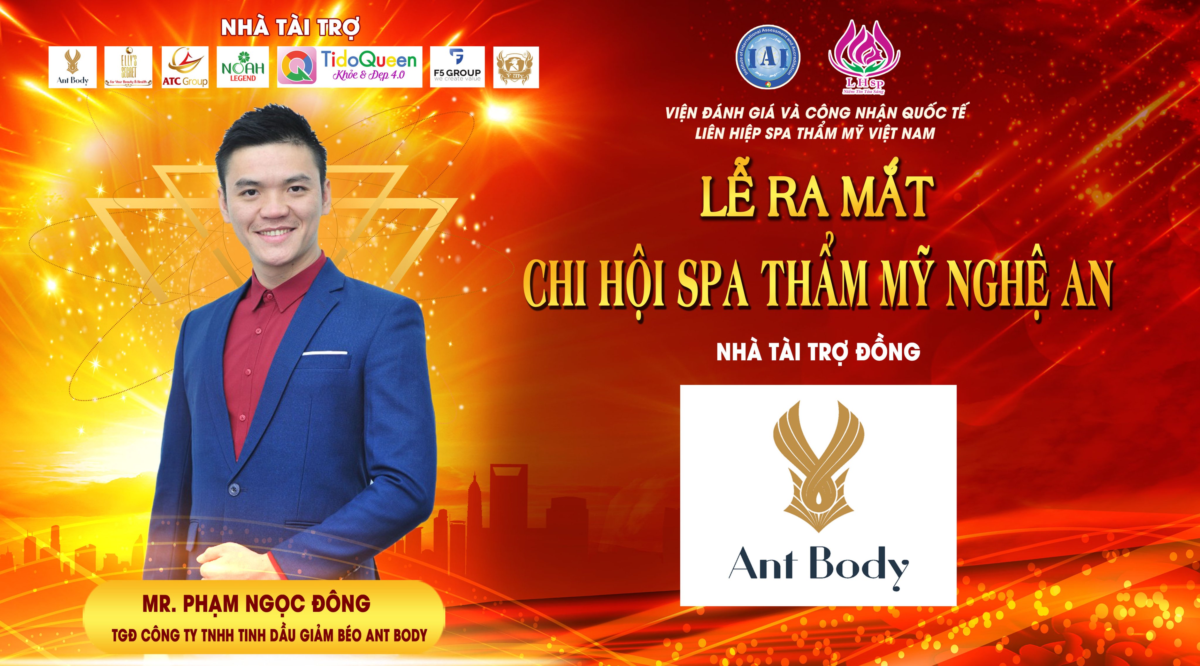 Sự kiện ra mắt Chi hội spa thẩm mỹ Nghệ An được đánh giá là cơ hội vàng để các doanh nghiệp spa có cơ hội phát triển thương hiệu sản phẩm, dịch vụ, nhân hiệu. Bên cạnh đó sự kiện cũng ghi nhận sự đóng góp quý báu của các Nhà tài trợ, trong đó có Công ty tinh dầu giảm béo Ant Body.