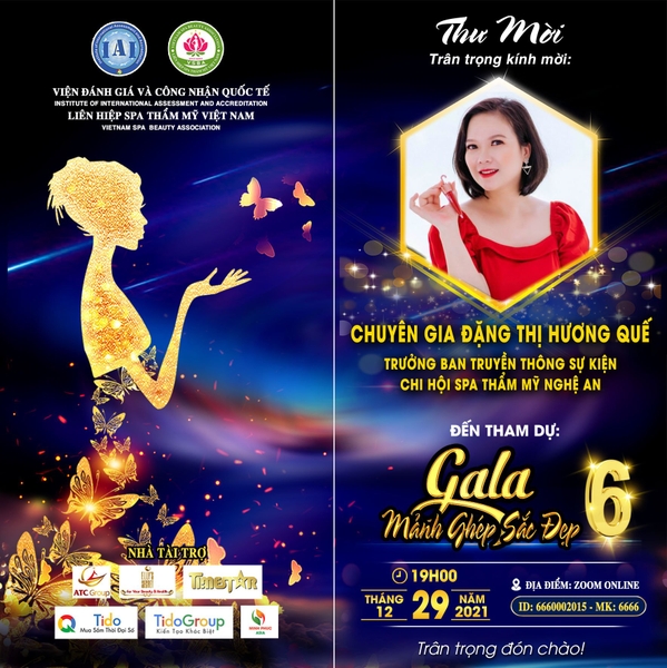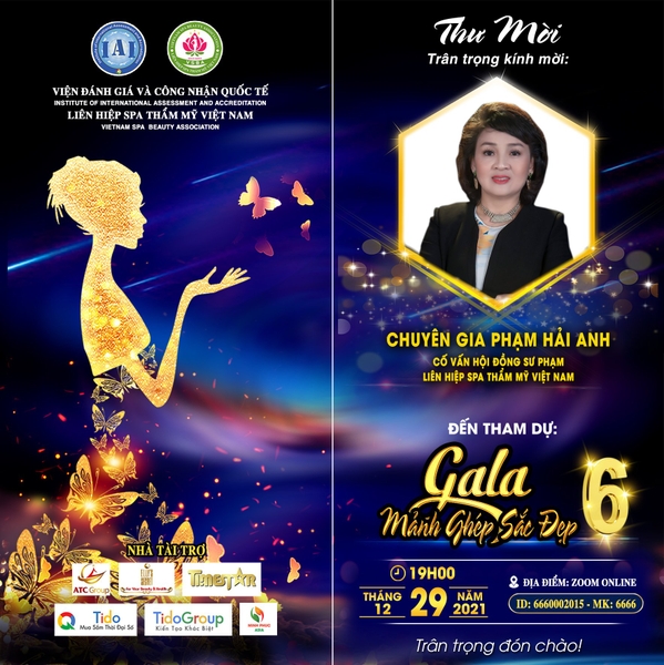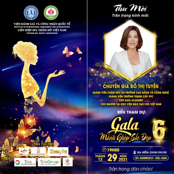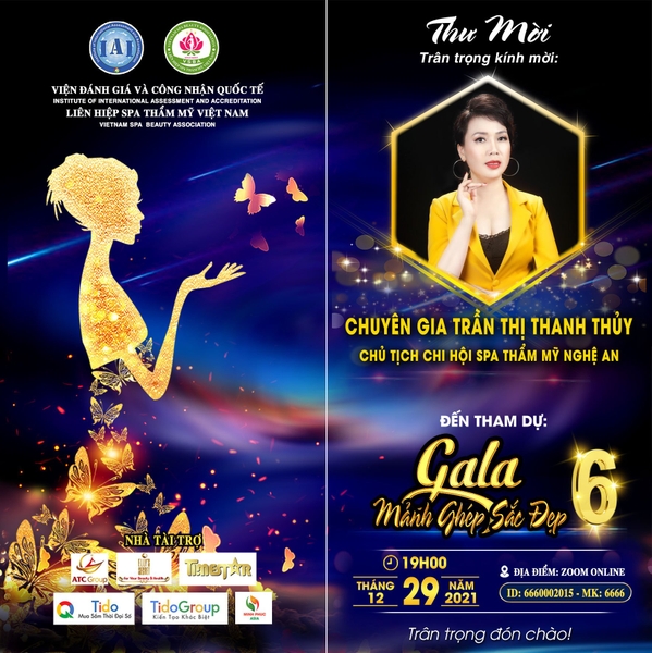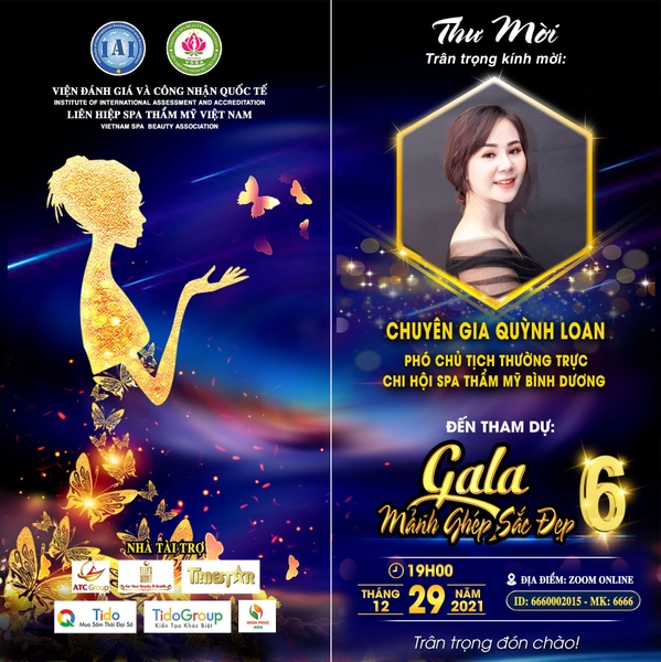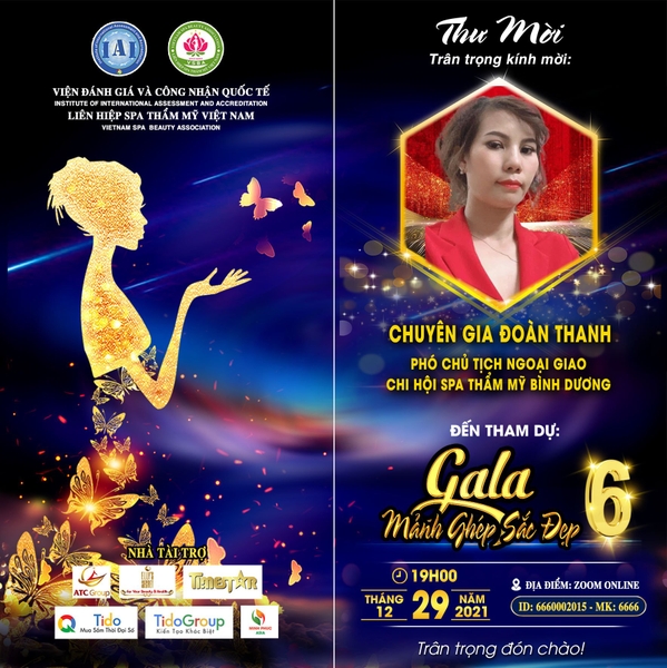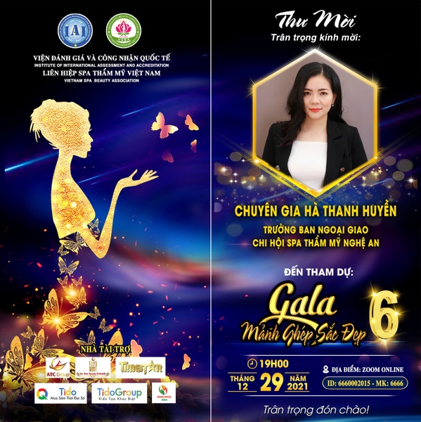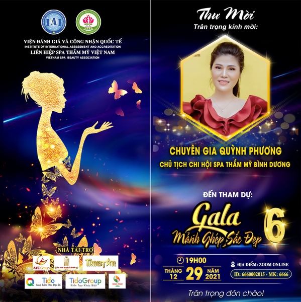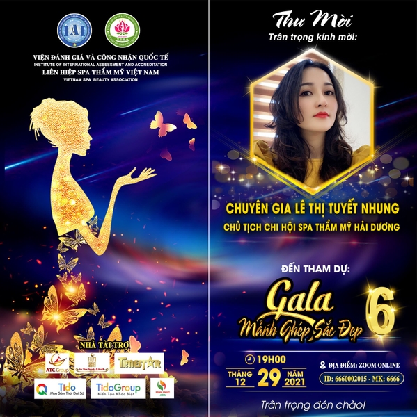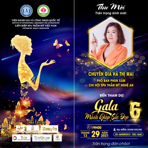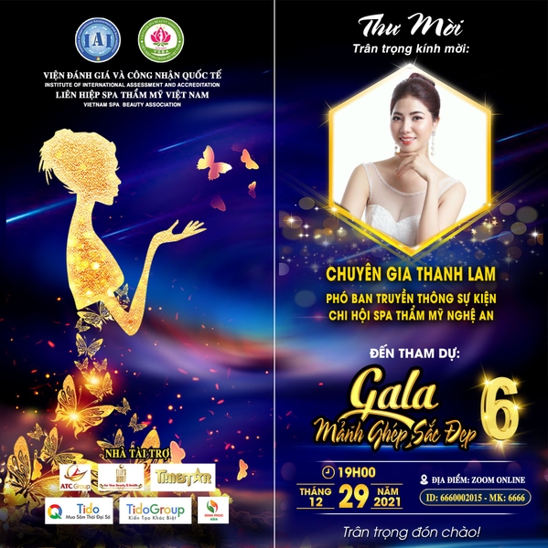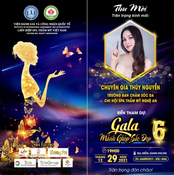 Một sự kiện làm đẹp lớn nhất cuối năm đang được mong chờ, Chương trình: “Gala Mảnh Ghép Sắc Đẹp 6” dự kiến tổ chức vào lúc 19h00 Ngày 29/12/2021 Địa điểm: Zoom Online: ID 6660002021 – MK 6666.