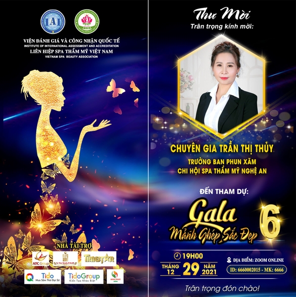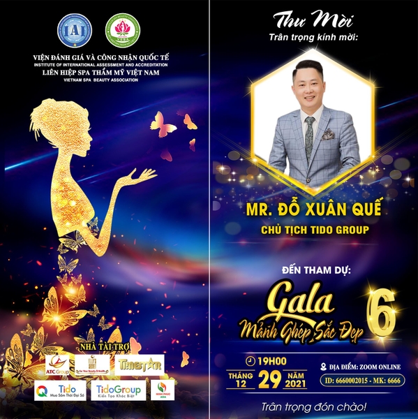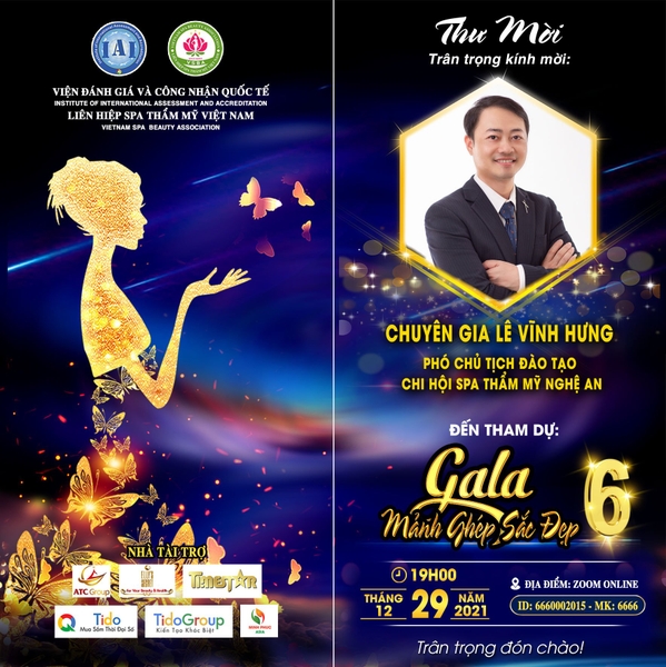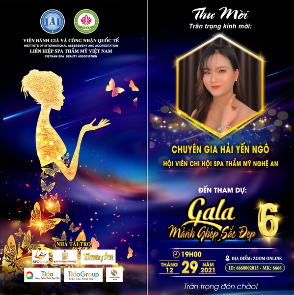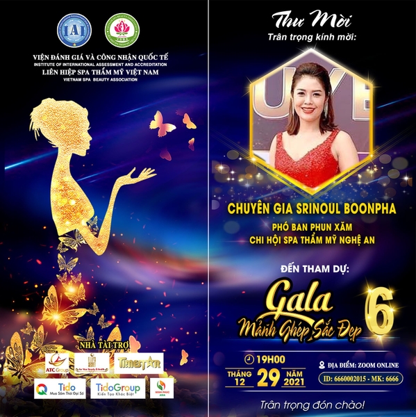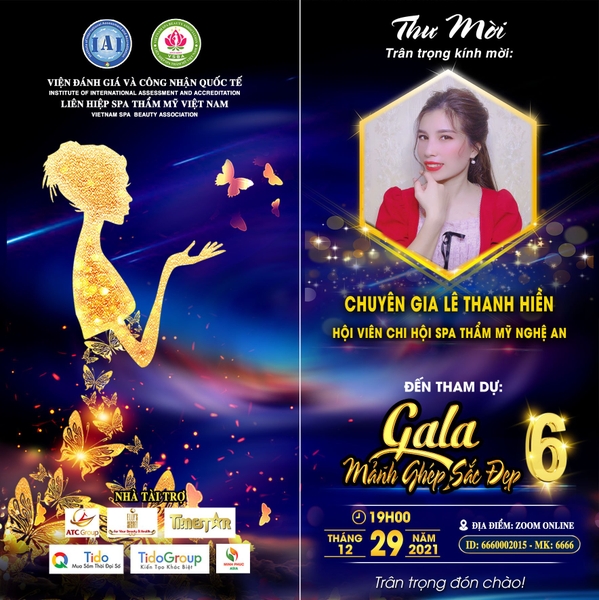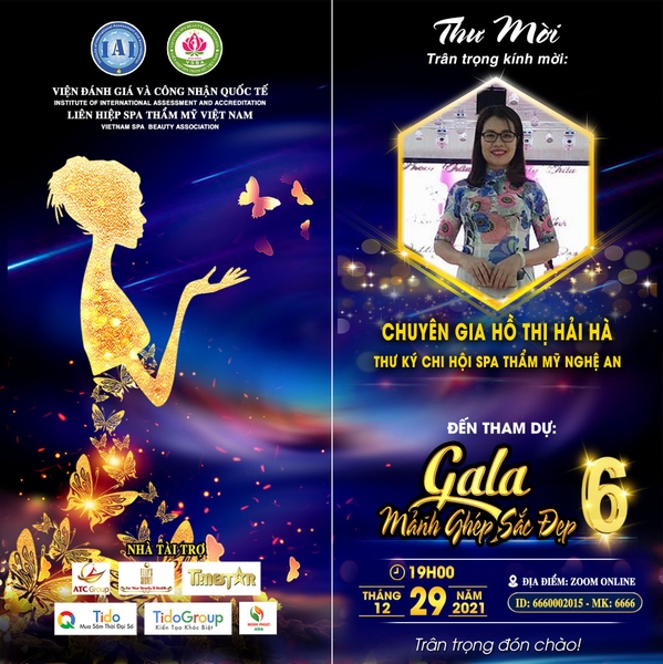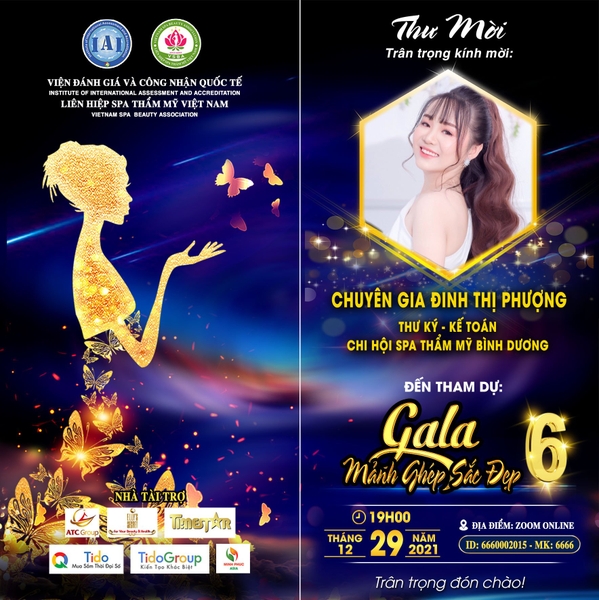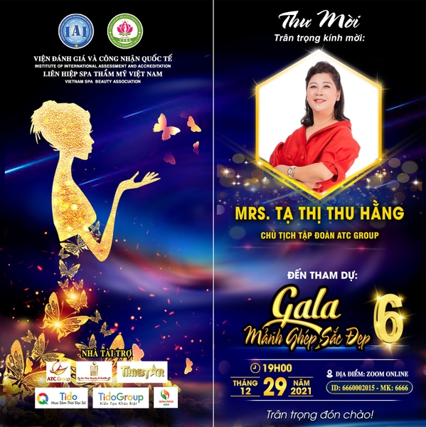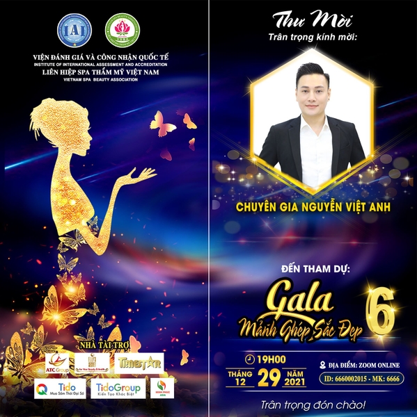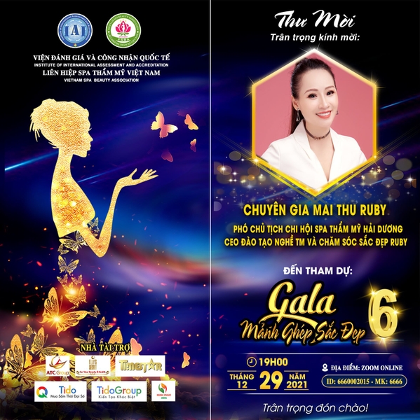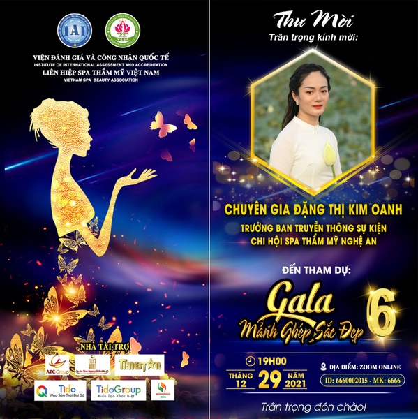 Một sự kiện làm đẹp lớn nhất cuối năm đang được mong chờ, Chương trình: “Gala Mảnh Ghép Sắc Đẹp 6” dự kiến tổ chức vào lúc 19h00 Ngày 29/12/2021 Địa điểm: Zoom Online: ID 6660002021 – MK 6666.