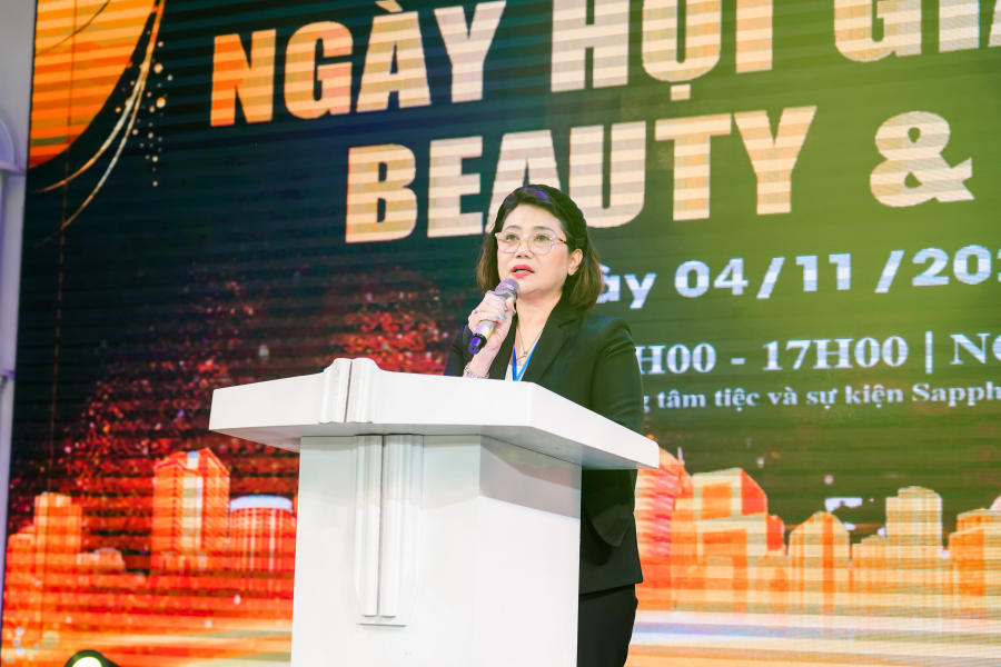 Chủ tịch Liên hiệp Spa Thẩm mỹ Việt Nam bà Đỗ Thị Diệu Hoa phát biểu tại sự kiện