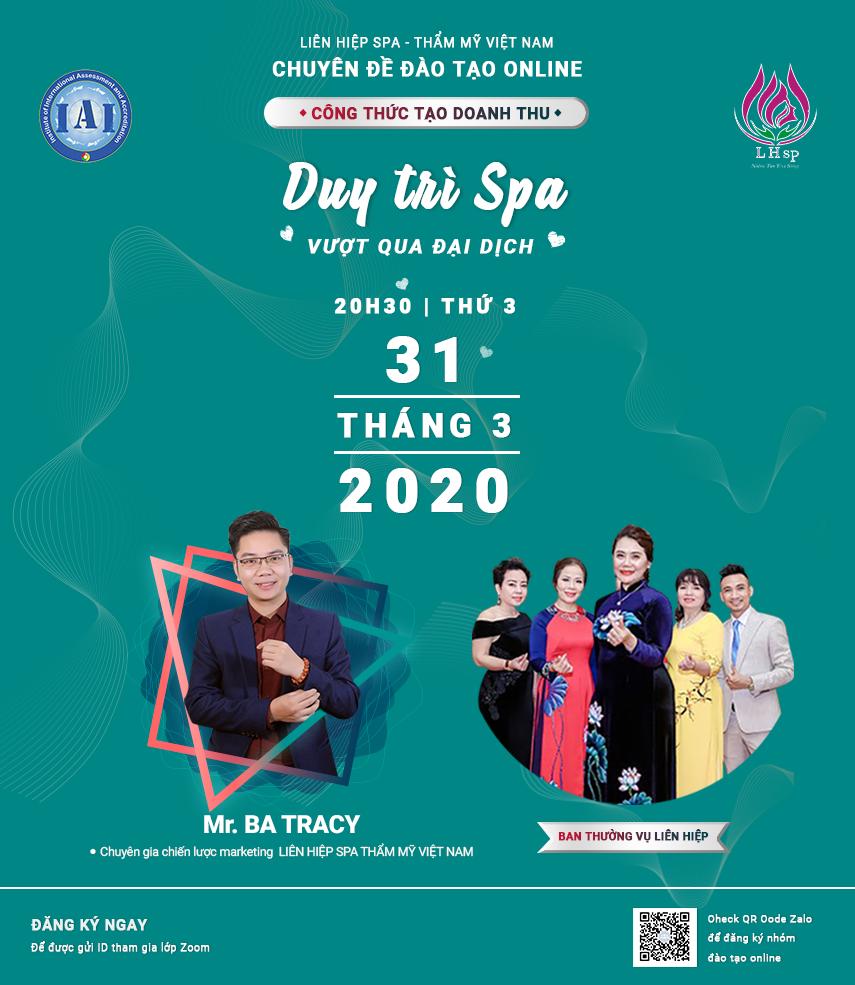 Đừng mơ "PHÁT TRIỂN" hay "BÙNG NỔ" thời điểm này. DUY TRÌ" spa vượt qua đại dịch ĐỂ CHÚNG TÔI GIÚP BẠN. Liên hiệp spa- TM Việt Nam thông báo tới toàn thể hội viên về chương trình đào tạo online: " CÔNG THỨC TẠO DOANH THU- DUY TRÌ SPA - VƯỢT QUA ĐẠI DỊCH" vào thứ ba hằng tuần.