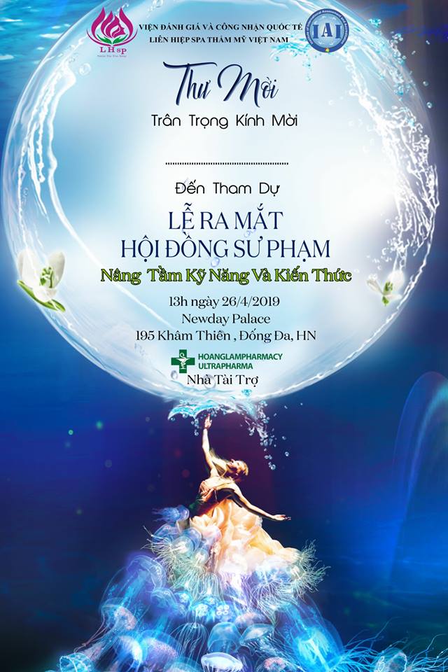 Vào ngày 26 tháng 04 năm 2019 tới đây tại hội trường Newday , 195 Khâm Thiên, Đống Đa, Hà Nội sẽ diễn ra một sự kiện rất quan trọng của Liên hiệp spa thẩm mỹ Việt Nam.Đó là Lễ ra mắt hội đồng sư phạm củaLiên hiệp với chủ đề: " Nâng tầm kỹ năng và kiến thức". Hội đồng sư phạm của Liên hiệp là một hệ thống ban các ban chuyên môn thuộc lĩnh vực thẩm mỹ bao gồm: "Chăm sóc da, chăm sóc móng, phun thêu thẩm mỹ, trang điểm nghệ thuật, nối mi nghệ thuật, thiết kế tạo mẫu tóc, chăm sóc sức khỏe Dưỡng sinh Đông Y".Mỗi một ban chuyên môn sẽ là một huyết mạch quan trọng của sự phát triển trong kế hoạch và chiến lược đào tạo của Liên hiệp.