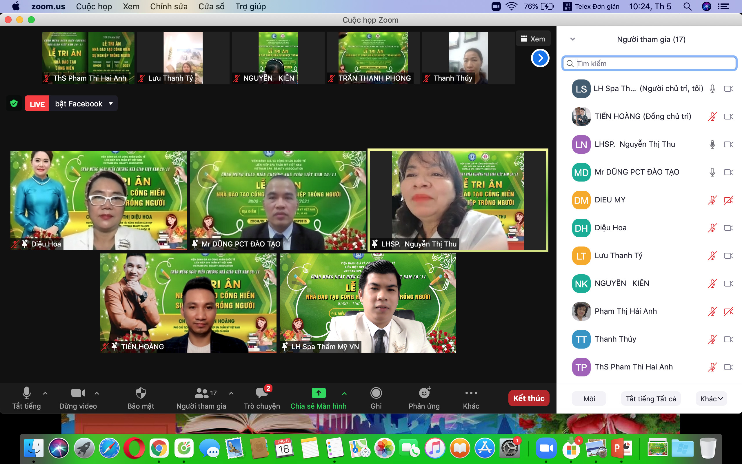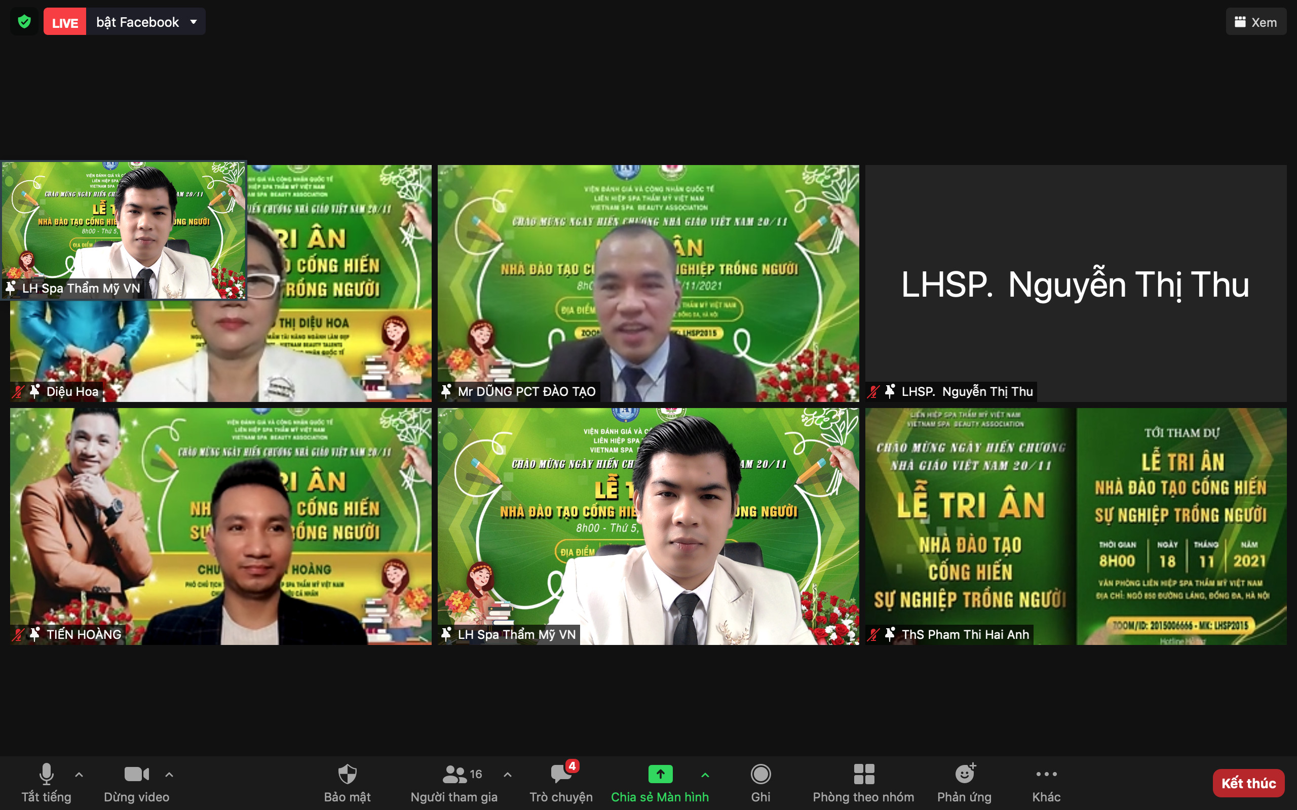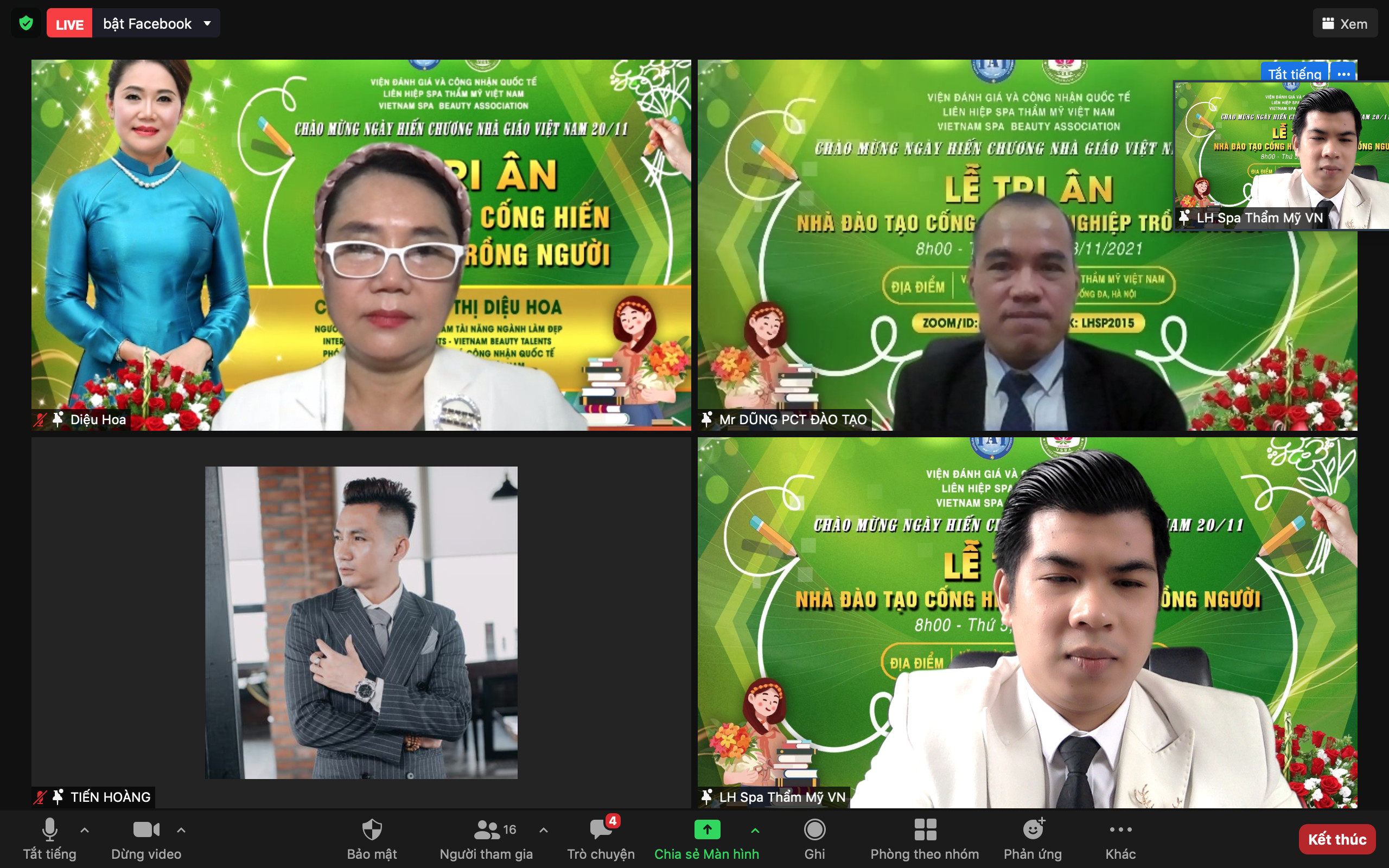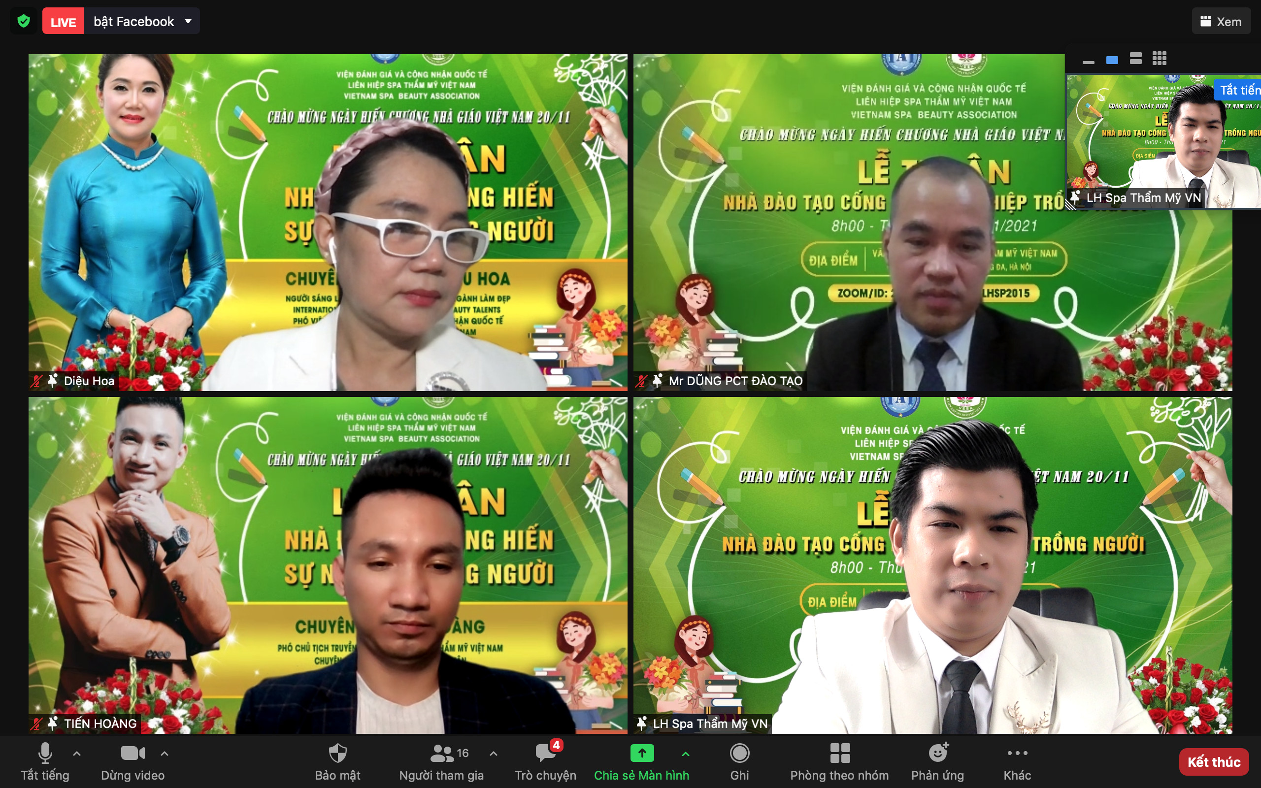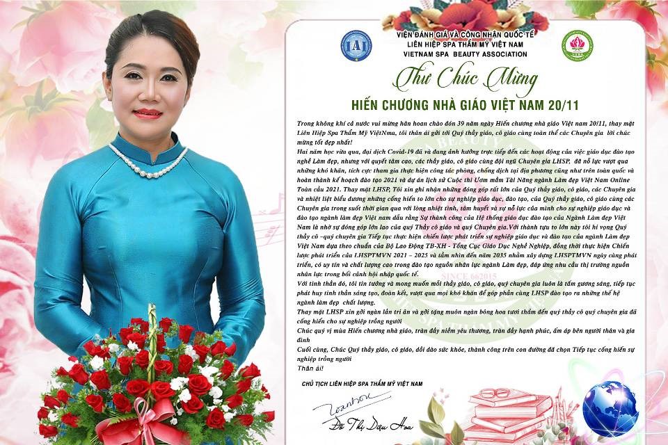 Trong khó khăn thử thách của thời kỳ đổi mới, thời kỳ ứng phó và hạn chế các tác động tiêu cực của dịch bệnh Covid- 19, các nhà giáo, nhà đào tạo, chuyên gia đã hoàn thành xuất sắc nhiệm vụ của mình. Thay mặt Liên hiệp Spa thẩm mỹ Việt Nam, Chủ tịch Đỗ Thị Diệu Hoa đã gửi lời chúc, lời cảm ơn, tri ân đến các nhà đào tạo. Chúc cho những “người lái đò” thầm lặng luôn mạnh khỏe, hạnh phúc và cống hiến nhiều hơn cho ngành giáo dục.
