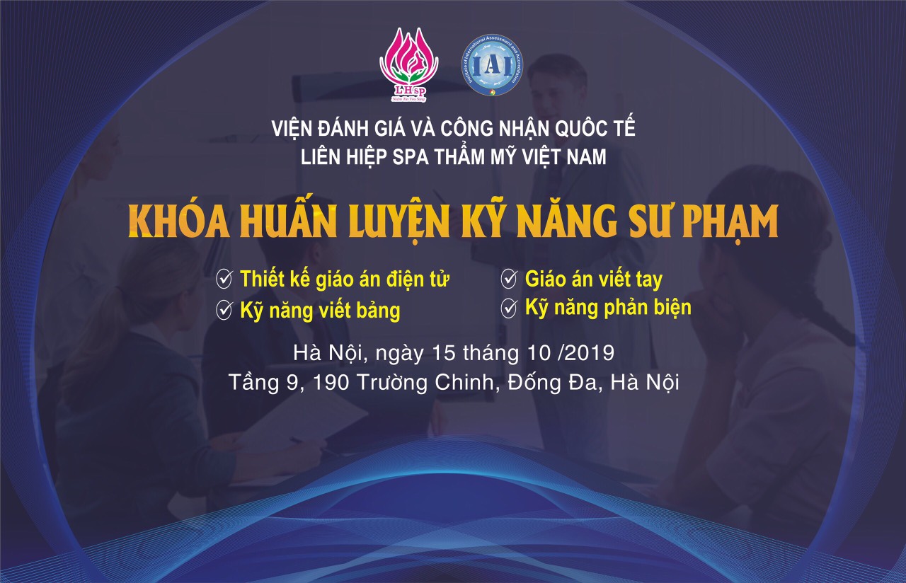 Với mong muốn xây dựng ngành Làm đẹp phát triển bài bản, chuyên nghiệp, Liên hiệp Spa Thẩm mỹ Việt Nam đã xây dựng rất nhiều khóa học dành cho hội viên cũng như chủ các spa trên cả nước về kiến thức chuyên môn, hành lang pháp lý, phát triển kinh doanh, các kỹ năng mềm trong quản lý. Mục tiêu chuẩn hóa kỹ năng sư phạm cho đội ngũ giáo viên ngành làm đẹp Việt Nam cũng được Ban chấp hành Liên hiệp Spa Thẩm mỹ Việt Nam đưa vào kế hoạch hoạt động đào tạo thường niên của Liên hiệp. Năm nay, khóa huấn luyện kỹ năng sư phạm lần thứ nhất dự kiến được tổ chức vào trung tuần tháng 10 tại 190 Trường Chinh, Hà Nội với quy mô 60 học viên. Đây là khóa học do Liên hiệp Spa Thẩm mỹ Việt Nam hỗ trợ do đó các học viên tham gia khóa đào tạo huấn luyện kỹ năng sư phạm này được miễn học phí toàn bộ chỉ đóng phí hỗ trợ tổ chức lớp học từ 300,000vnđ ( đối với hội viên của Liên hiệp) đến 800.000vnđ ( không phải là hội viên của Liên hiệp).